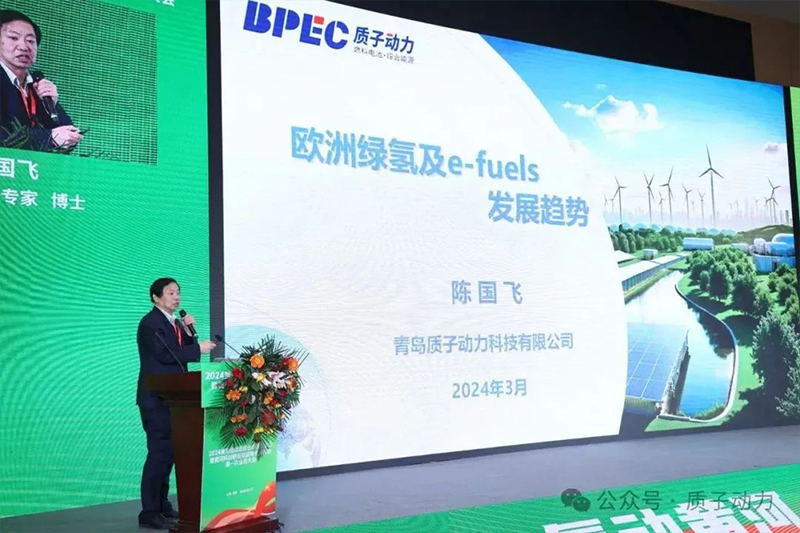 會上,質子動力董事長陳國飛博士就歐洲綠氫及e-fuels的發展趨勢進行了系統分享,話題破局氫能發展中的問題,探討氫能產業創新發展,聚焦“雙碳”背景下氫能應用潛力及產業化路徑等前沿熱點,共商發展謀合作。
