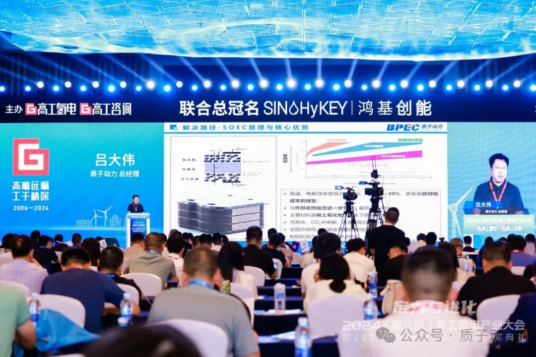 6月18日,2024(第六屆)高工氫電產業大會,以“定力與進化”為主題,覆蓋氫能制儲運加和燃料電池及下游應用全鏈共設7大專場,5場圓桌對話,超600位行業精英齊聚一堂,分享產業熱點、討論關鍵技術,共話發展走勢。青島質子動力科技有限公司(簡稱質子動力)總經理呂大偉發表了主題演講,分享《SOEC研發和產業化進展》。